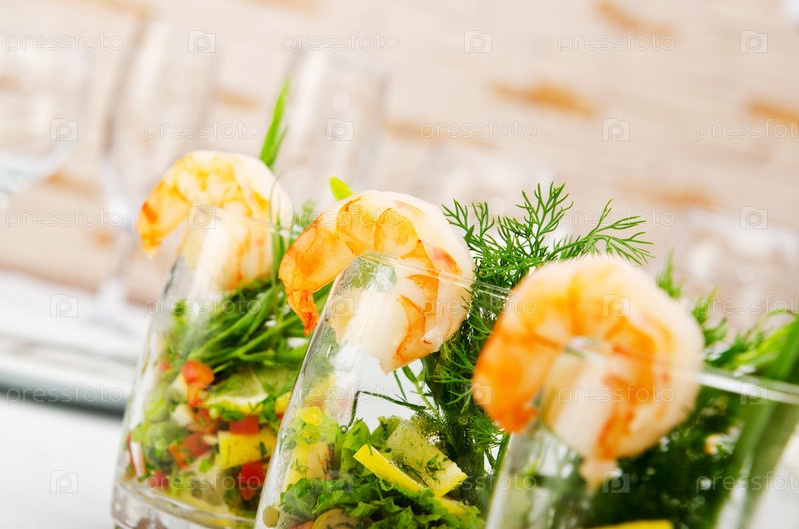 Салат с морепродуктами в стаканах