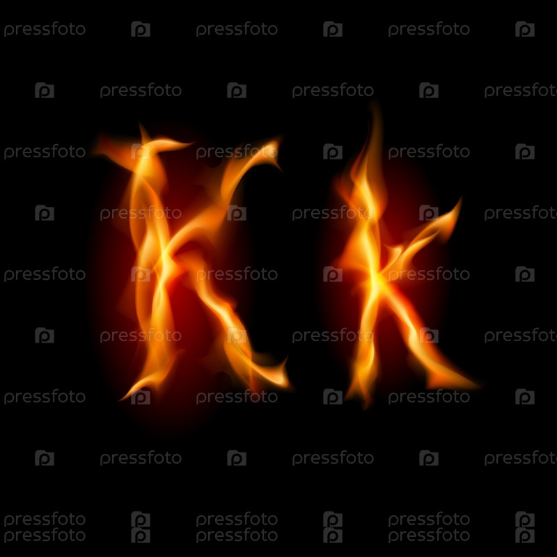 Огненная буква K на черном фоне