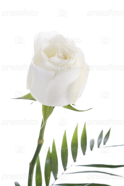 Белая роза крупным планом на белом фоне
