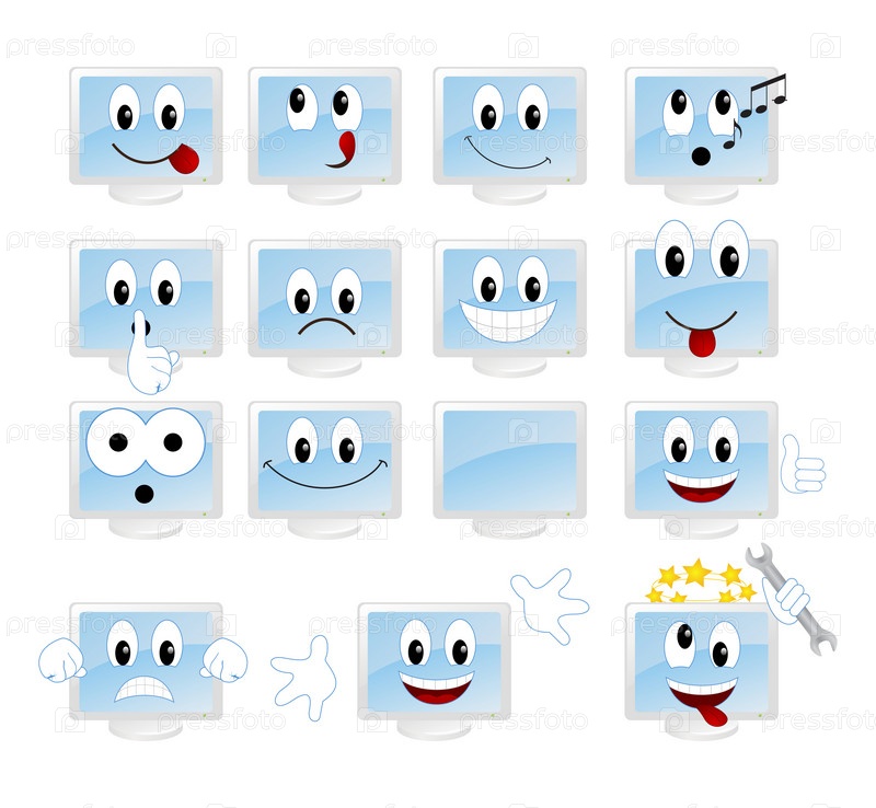 Набор мониторов-смайликов. Векторные иллюстрации на белом фоне