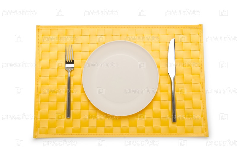 Тарелка, вилка и нож на столе