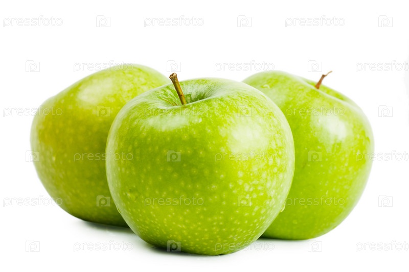 Зеленые яблоки на белом фоне
