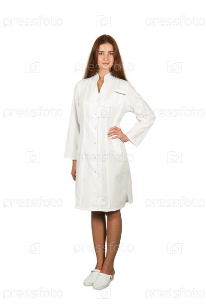 Молодая девушка-врач или медсестра на белом фоне