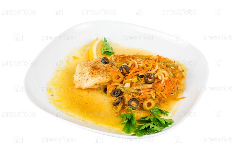 Вкусная рыба-судак с миксом из овощей