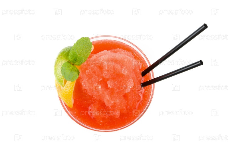 Свежий коктейль с арбузом, лимоном и мятой на белом фоне