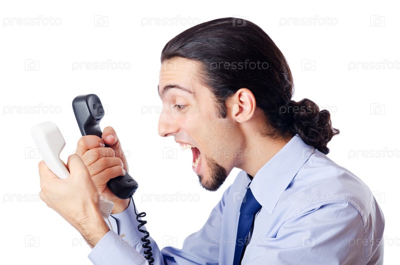 Бизнесмен с телефоном на белом фоне