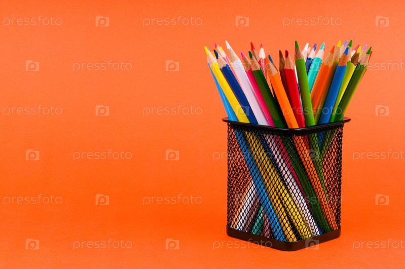 Цветные карандаши на оранжевом фоне