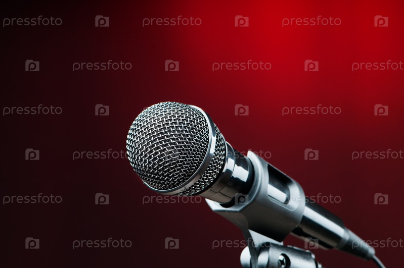 Микрофон крупным планом на красном фоне