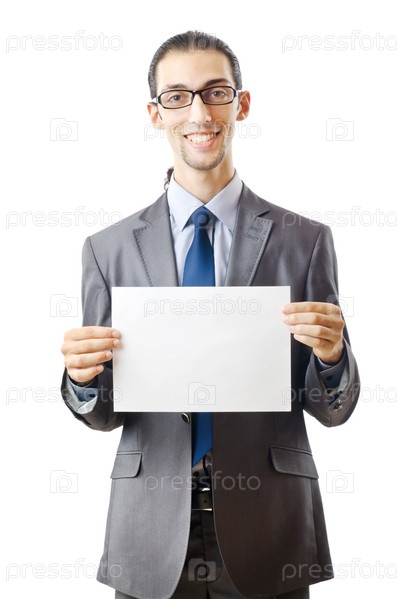 Бизнесмен с пустым листом бумаги в руках