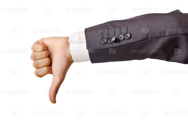 Бизнесмен показывает большой палец в знак неодобрения