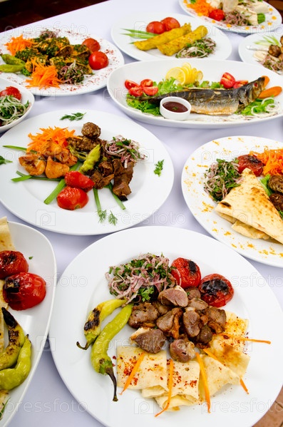 Множество блюд на столе