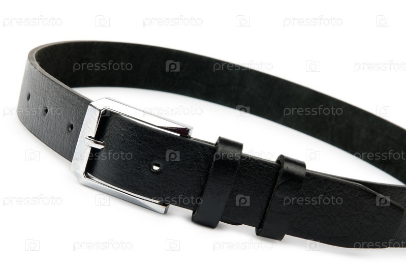 Черный кожаный ремень на белом фоне