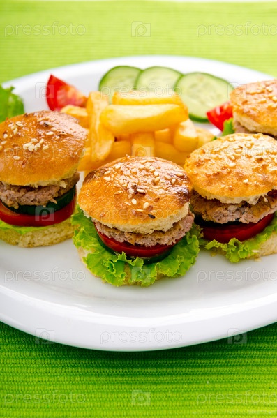 Маленькие гамбургеры и картофель фри