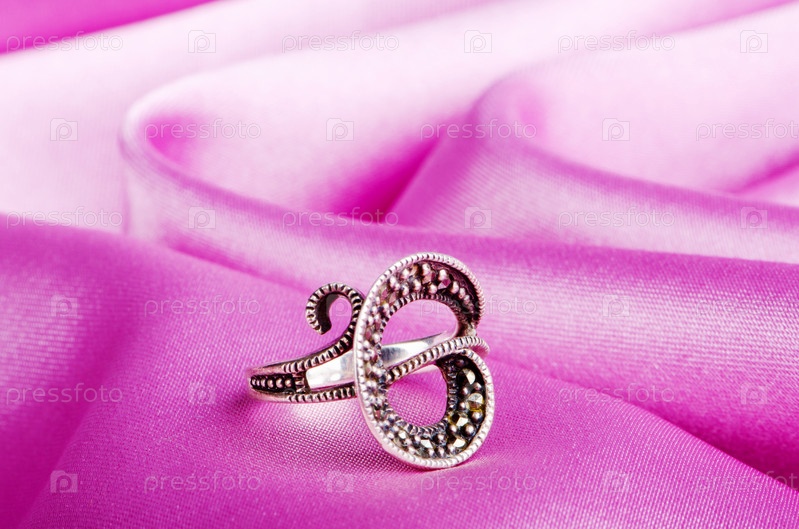 Красивое кольцо на фоне атласа