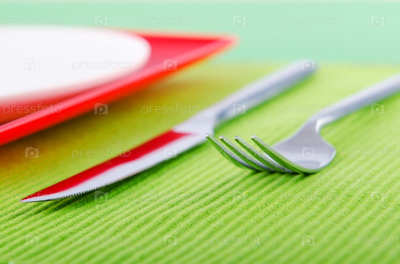 Тарелка и столовые приборы крупным планом