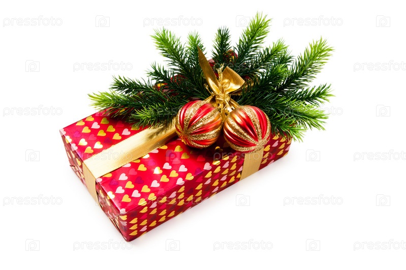 Новогодний подарок на белом фоне