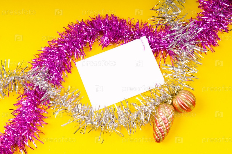 Пустой лист бумаги и новогодние украшения