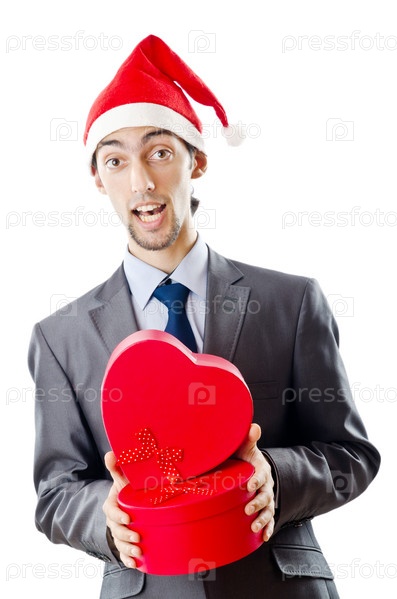 Молодой бизнесмен с новогодними подарками