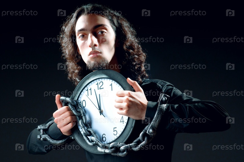 Молодой человек с цепью и часами на черном фоне