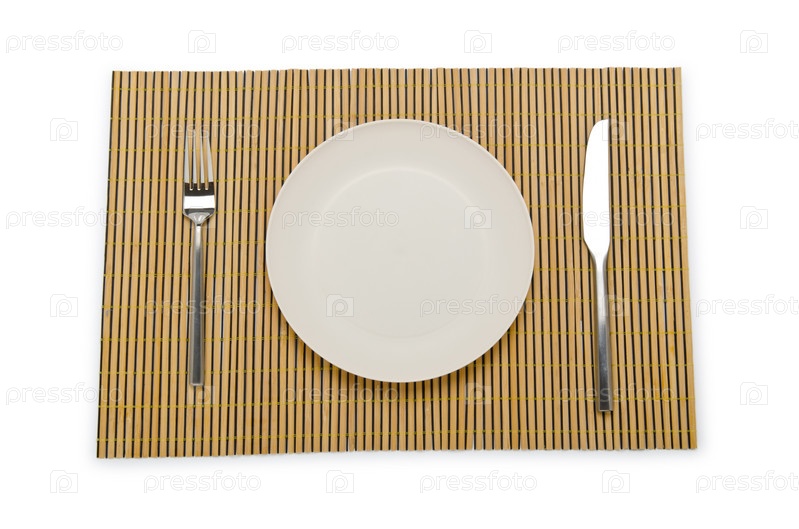 Сервировка посуды на бамбуковой салфетке