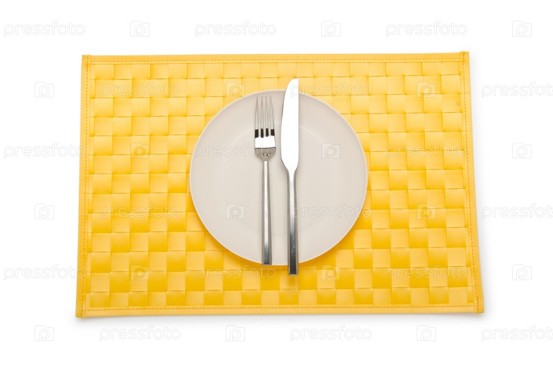 Сервировка посуды на желтой салфетке