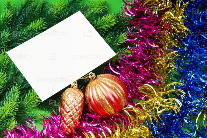 Пустой лист бумаги и новогодние украшения