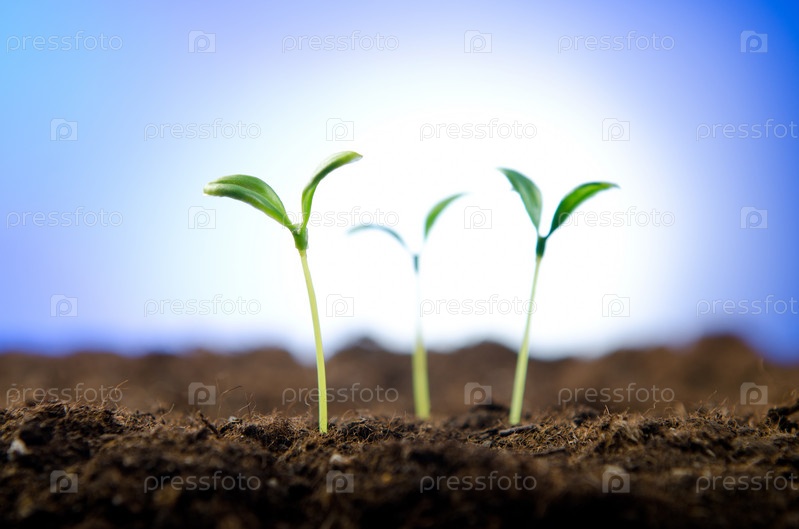 Зеленые ростки пробиваются сквозь землю