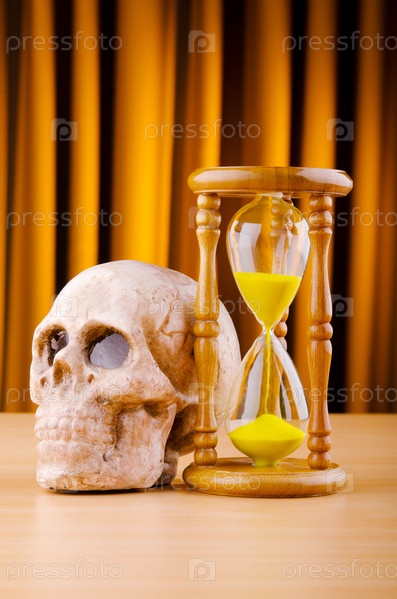 Песочные часы и череп на столе