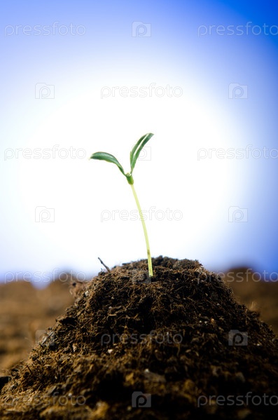 Зеленый росток пробивается сквозь горстку земли