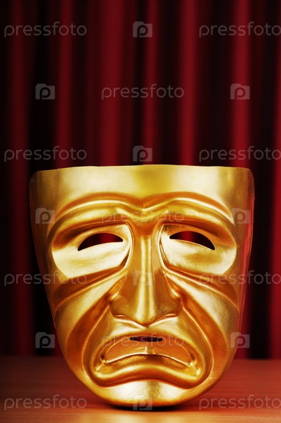 Театральная маска на фоне занавеса