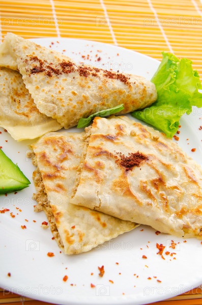 Блины с мясом на тарелке