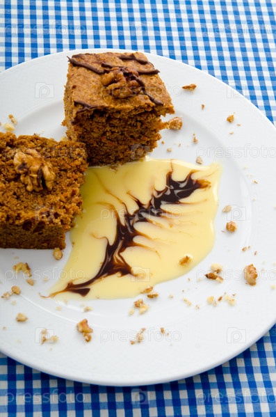 Торт со сладким соусом на тарелке