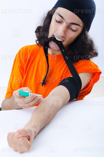 Молодой наркоман со шприцем