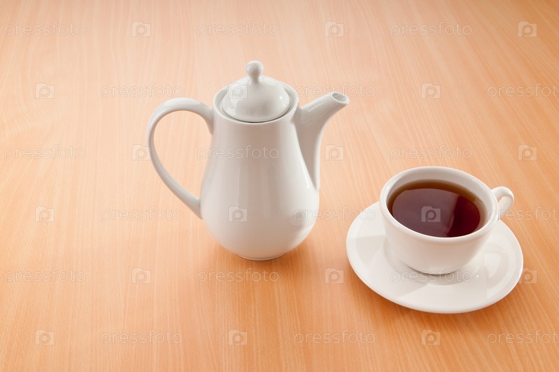 Чайник и чашка чая на столе