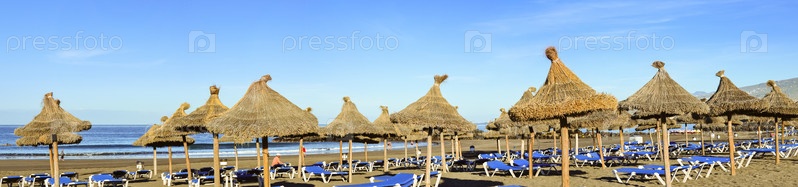 Зонтики и шезлонги на пляже, Тенерифе, Канарские острова, Испания