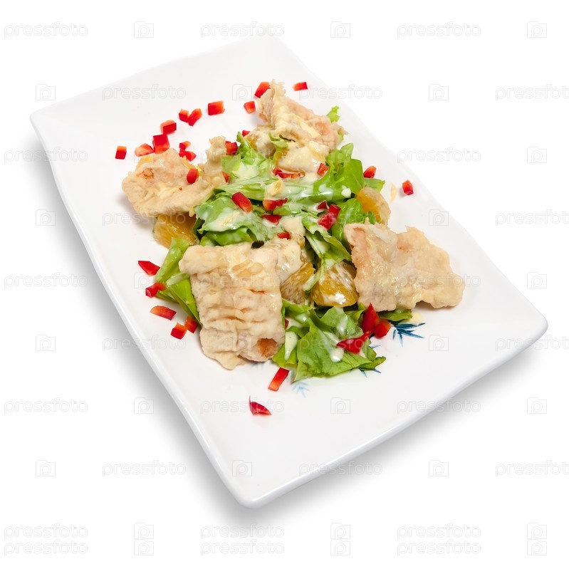 Салат с лососем на белом фоне