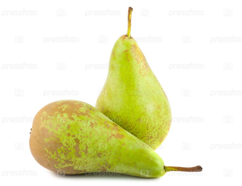 Две зеленые груши на белом фоне