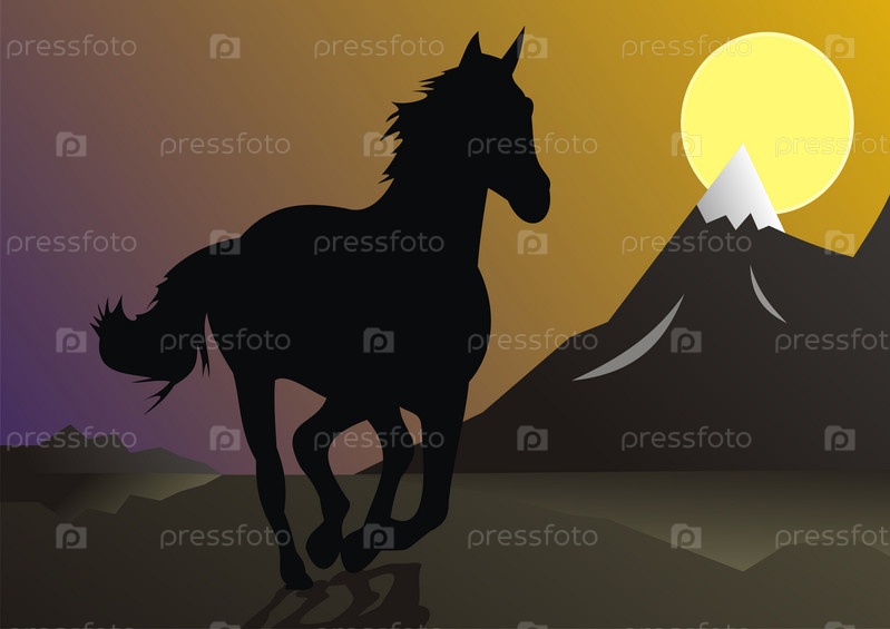 Силуэт лошади на фоне гор