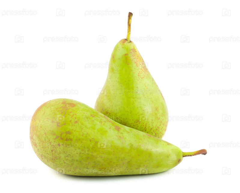 Две зеленые груши на белом фоне