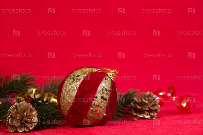 Рождественский натюрморт на красном фоне