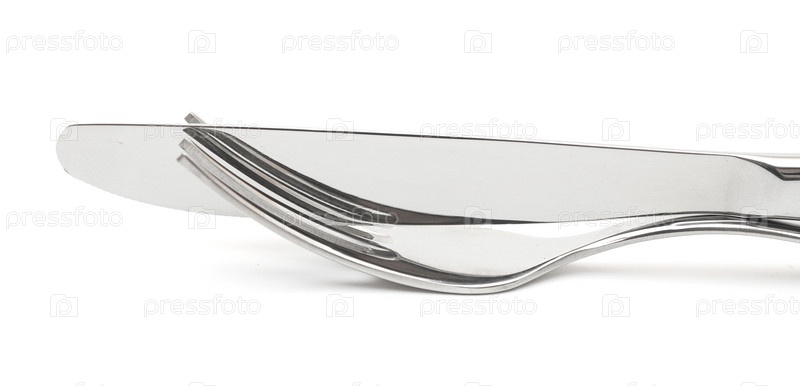 Нож и вилка на белом фоне