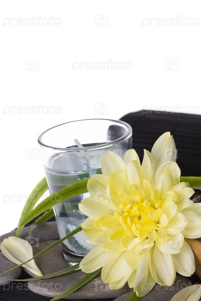 Гладкие камни и белый цветок крупным планом