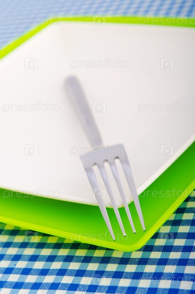 Пустые тарелки с вилкой