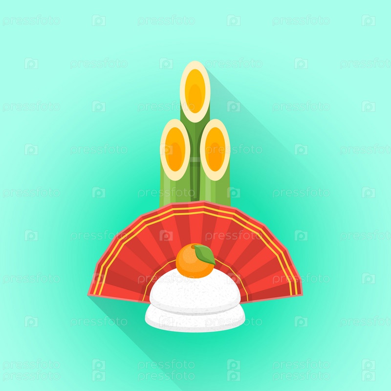 Вектор плоский Японии новый год украшение иллюстрации значок