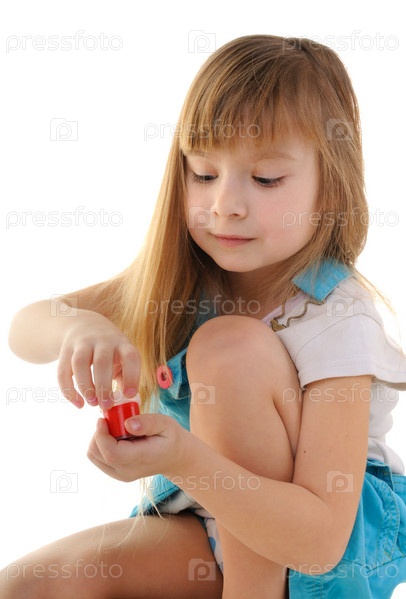 Маленькая девочка с краской на белом фоне