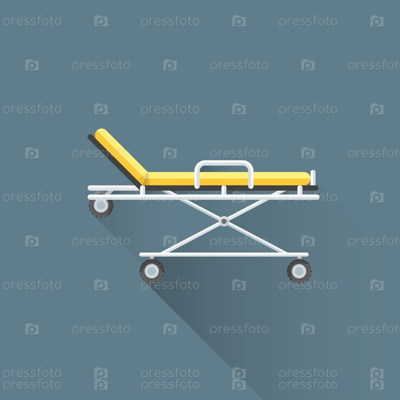 Плоский медицинских носилок вектора на колесах иллюстрации значок