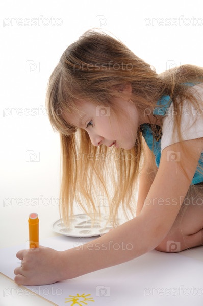 Маленькая девочка рисует на белом фоне