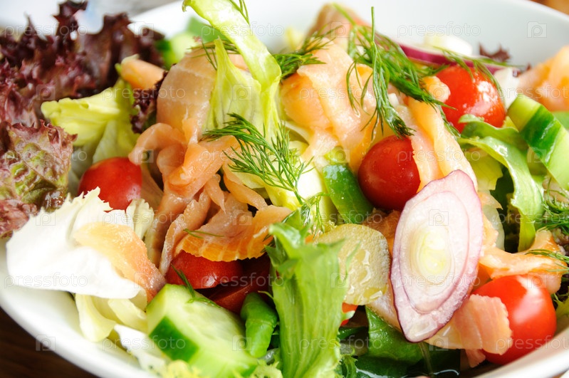 Салат из свежих овощей и рыбы