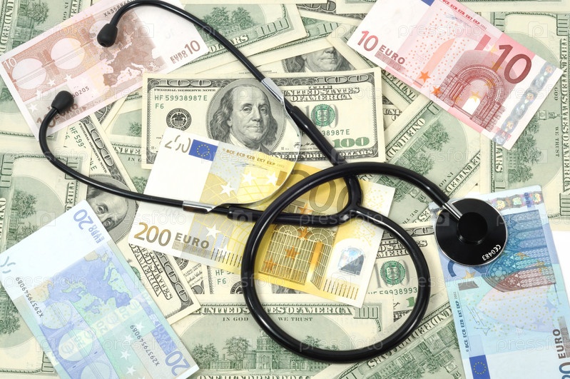 Деньги и стетоскоп крупным планом