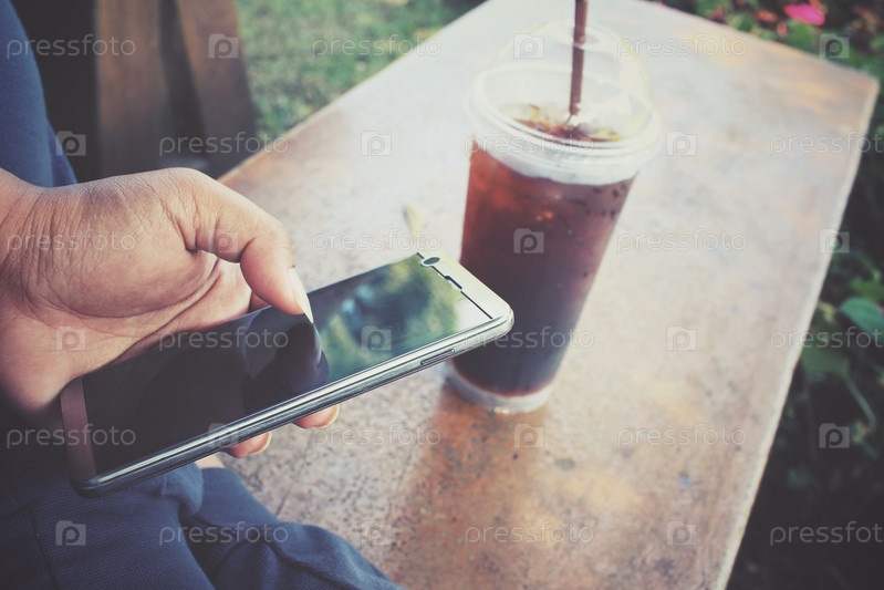 Селф ледяной кофе с смарт-телефон